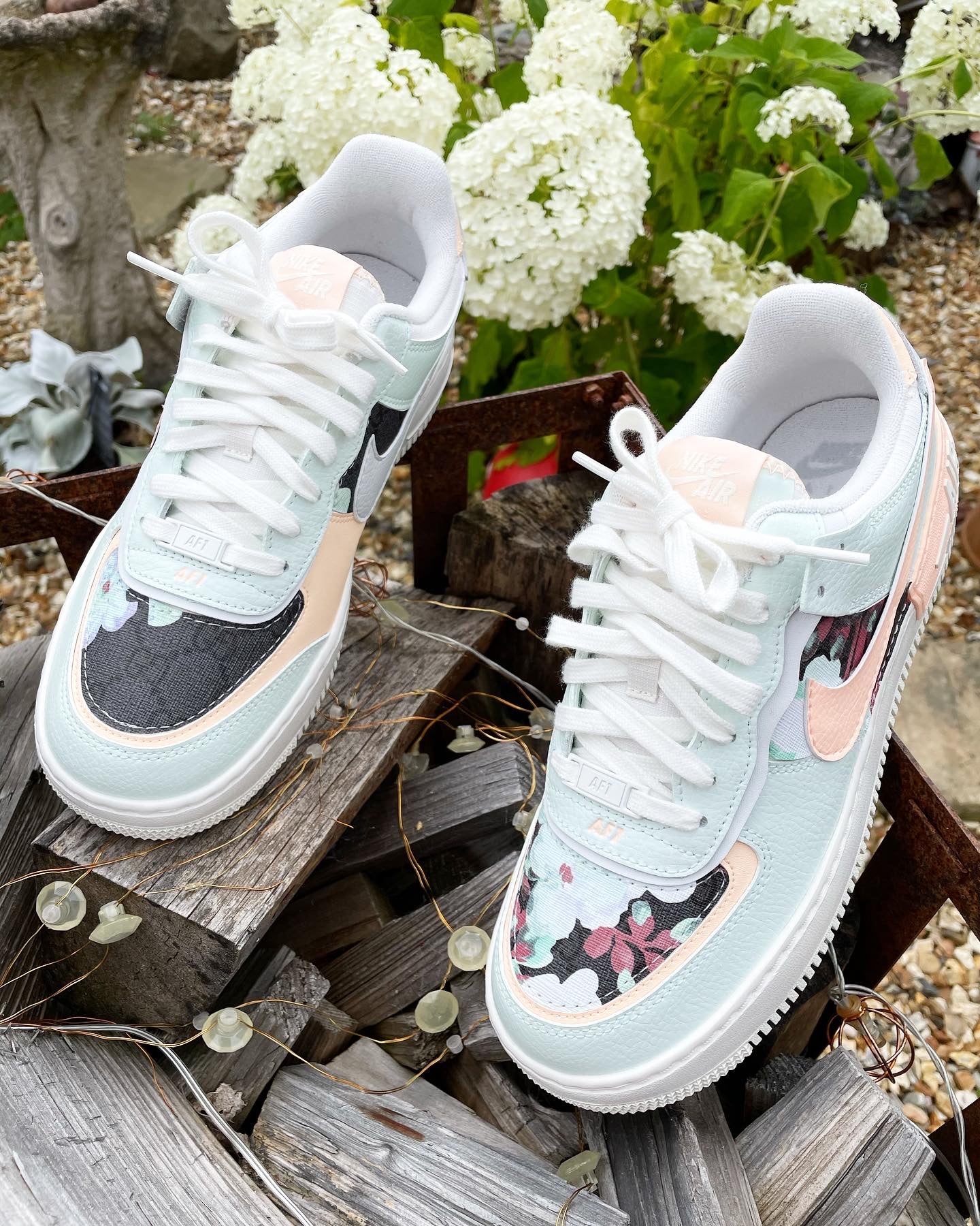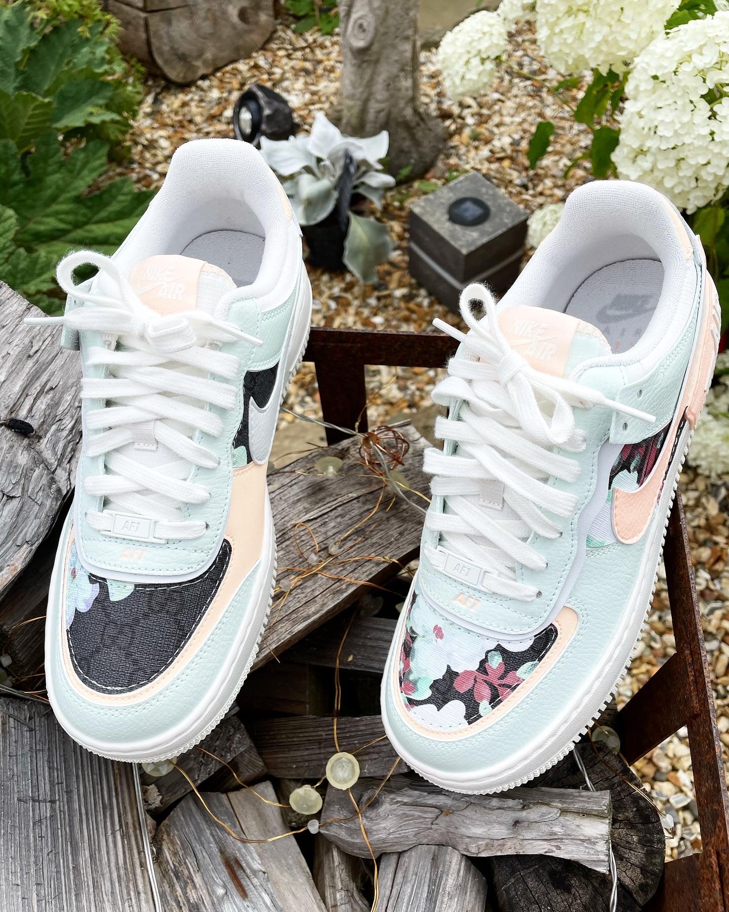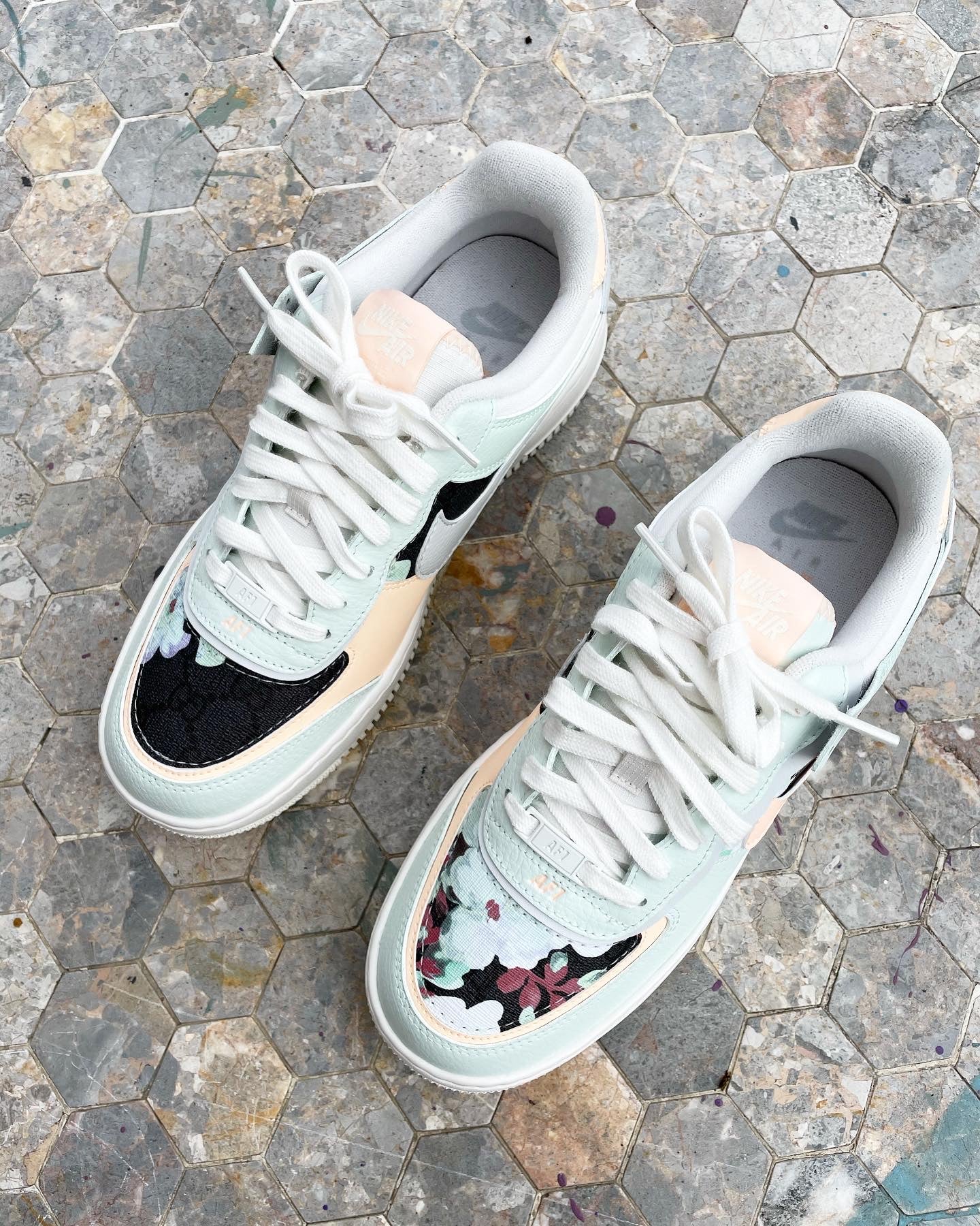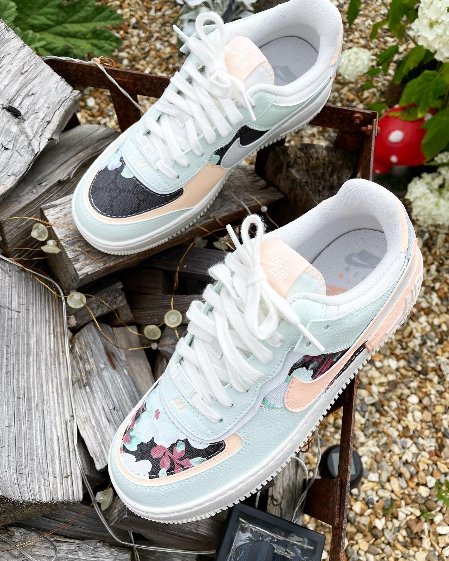 SIZE: 6.5 UK | Air Force 1 Shadow | Beige Teal • Lime GG