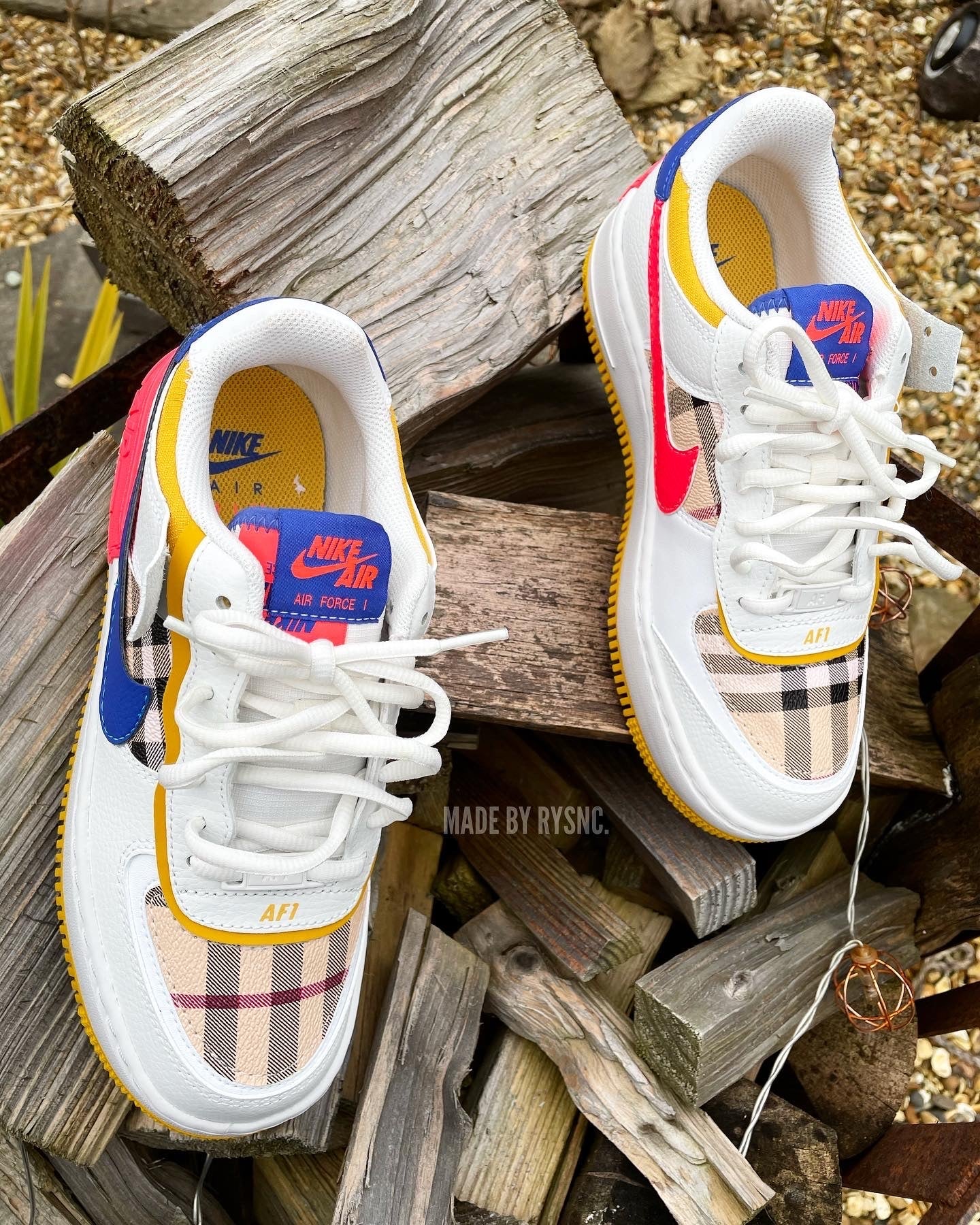 SIZE: 4.5 UK | Nike Air Force 1 Shadow | Gum Crimson • Burberry