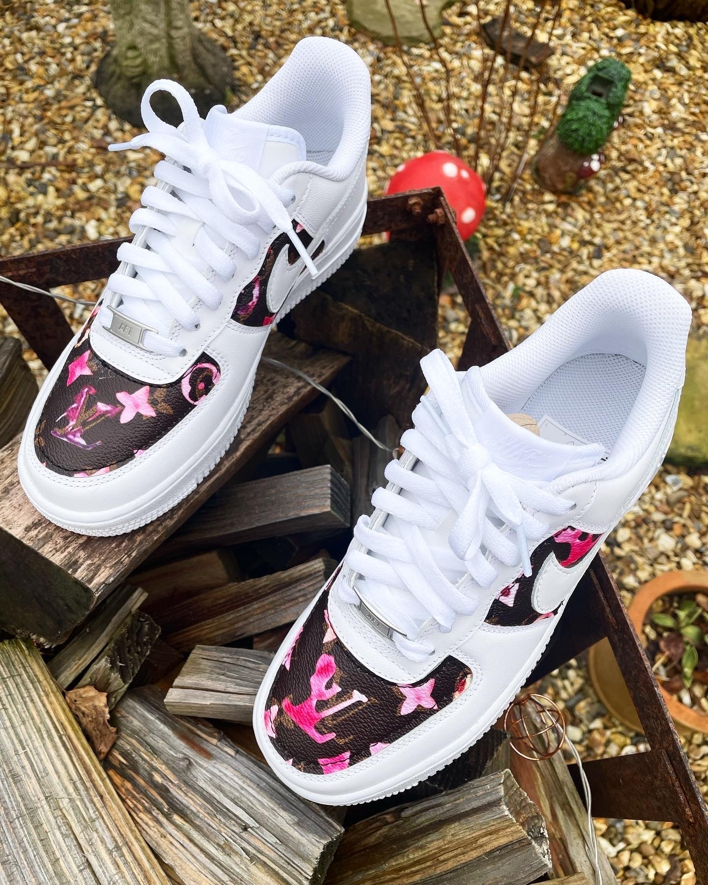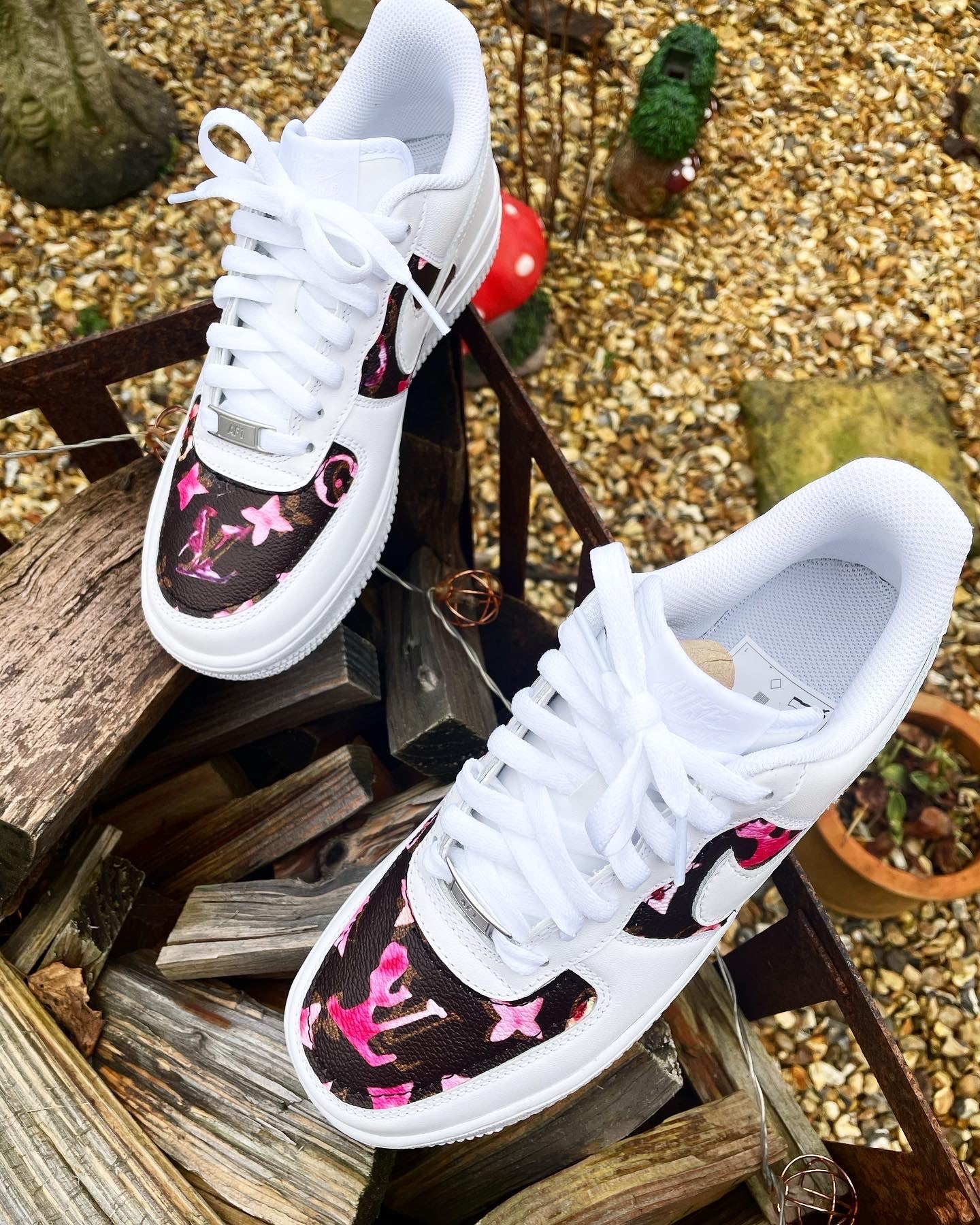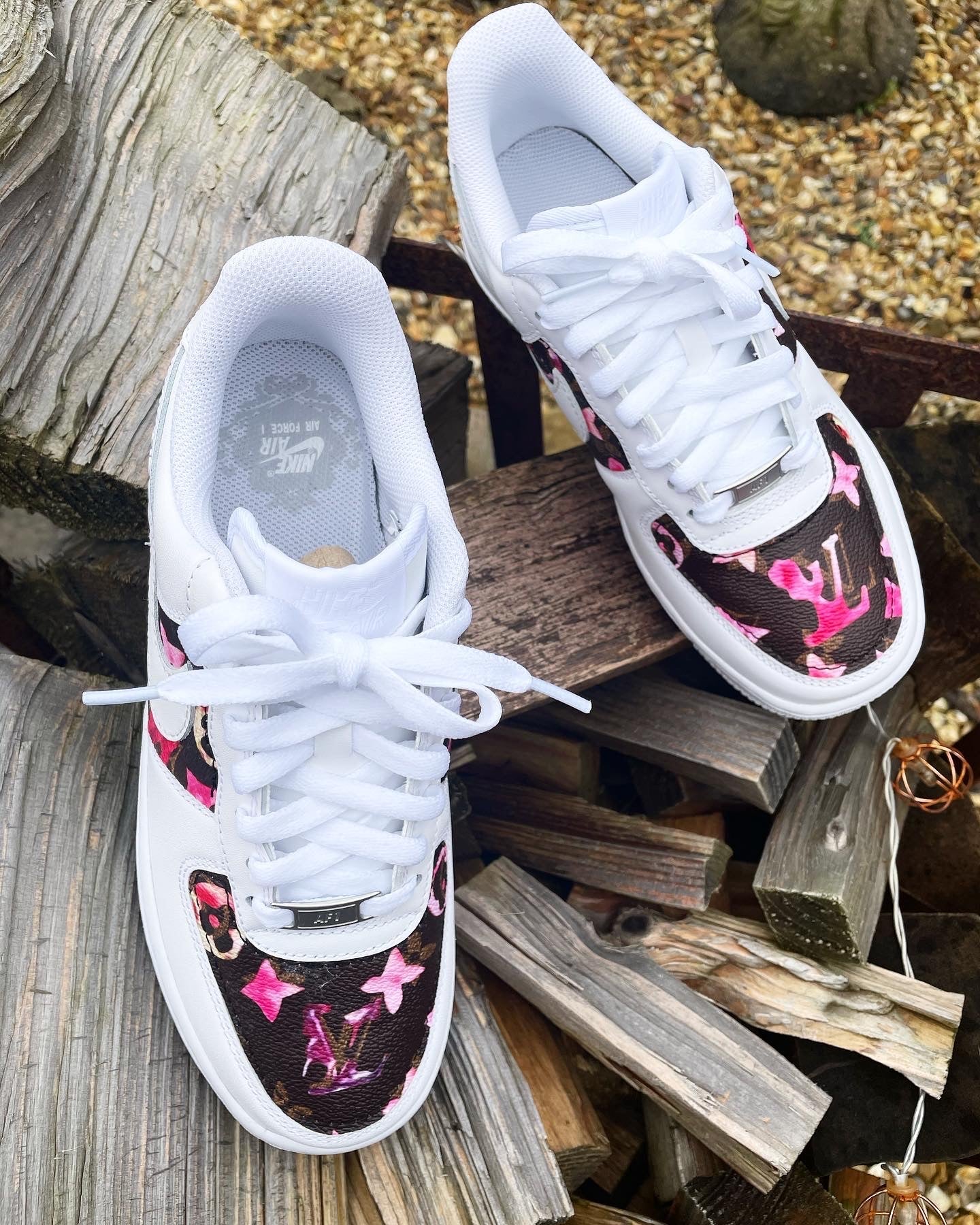 SIZE: 4 UK | Air Force 1 - White | Brown Monogram • Blossom